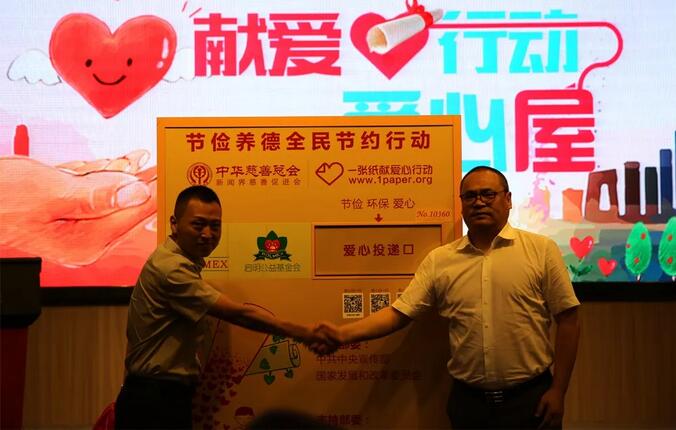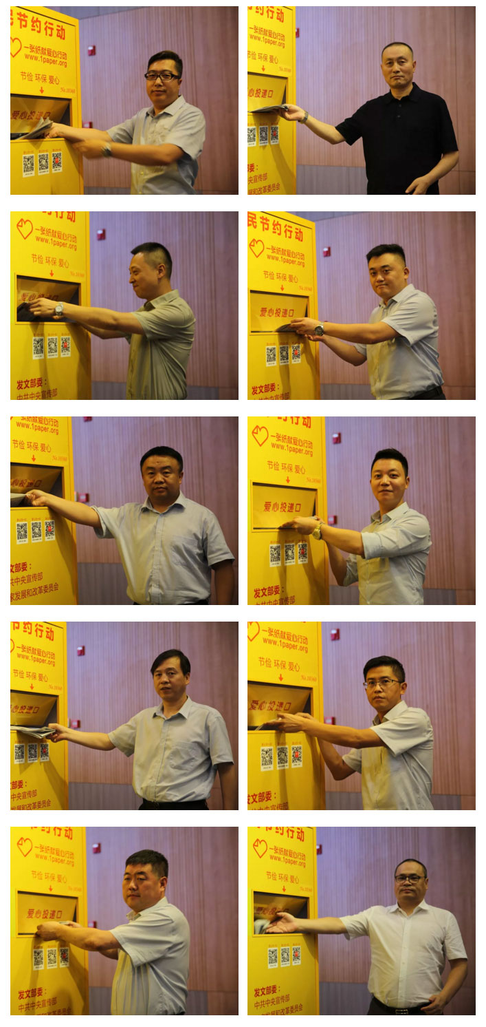 杨庆明宣布“一张纸献爱心行动”现场投放活动正式开始,在副理事长安凯的带领下,现场嘉宾排队把怀抱的一沓沓废旧报纸塞入爱心屋内,为急需救助的困难群体献上了一份爱心与真情。