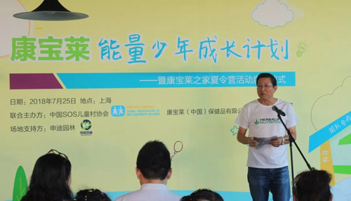 全球知名的营养品公司康宝莱近日宣布,康宝莱能量少年成长计划暨康宝莱之家夏令营在上海光明生态园正式启动。该计划的启动标志着康宝莱对儿童健康成长承诺的全面提升。中国SOS儿童村协会会长李进国,上海市工商局直销处周文奇副处长、卢颖科长,商务部对口支援湖南省邵阳市城步苗族自治县县委常委、副县长兼邵阳市商务局党委书记方凯,康宝莱中国董事长郑群怡、总裁郭木以及志愿者代表共同参与了该计划的揭幕。