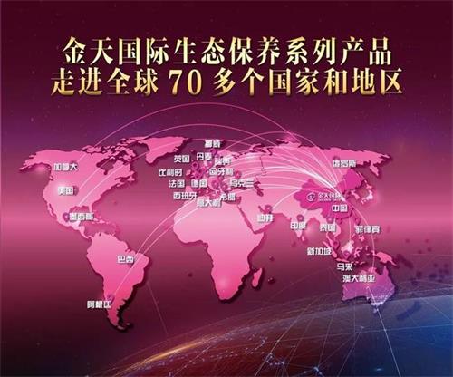 金天国际生态保养技术是在弘扬中医文化基础上创新研发的先进养生技术,历经27年的市场应用,消费者呈几何倍增的速度发展,立足生殖系统保养领域取得了显著的经济效益和社会效益,并逐渐形成一个能够充分满足市场需要的新兴健康产业。在“一带一路”倡议的指引下及国家政策的支持下,金天国际生态保养系列产品已走进全球70多个国家和地区,形成了独具民族特色的品牌影响力。