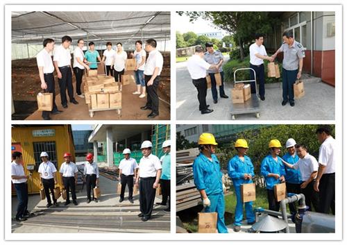 7月27日,安惠公司党委副书记金敏林,副总经理曹昌贵、郑惠华,工会主席李士强等,来到蕈菌园、机电部、提取车间、成品仓库、保安室等部门,慰问高温中坚守岗位的一线职工,并送上防暑降温用品,送上“清凉”的问候。