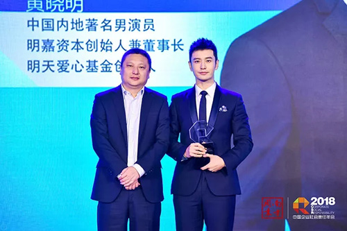 中国内地著名男演员、明嘉资本创始人兼董事长、明天爱心基金创始人黄晓明获颁2018年度责任先锋