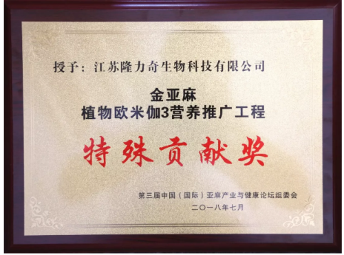 “金亚麻植物欧米伽3营养推广工程特殊贡献奖”获奖单位