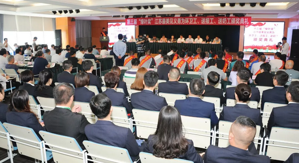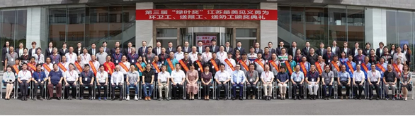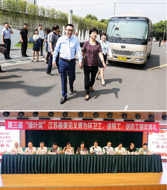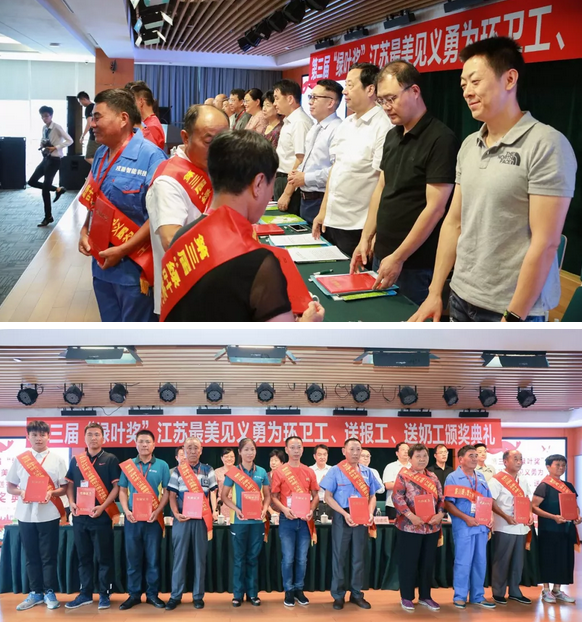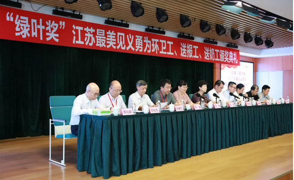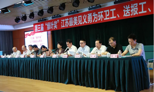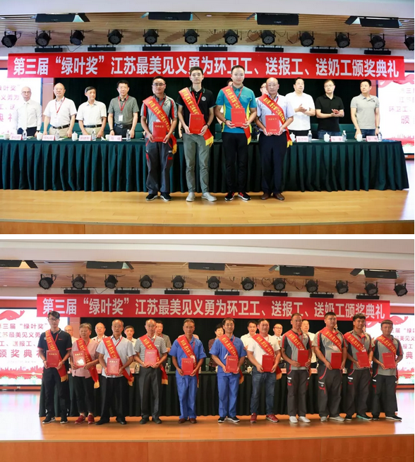7月31日上午,江苏省见义勇为基金会在绿叶科技集团总部举行第三届“绿叶奖”江苏最美见义勇为环卫工(送报工、送奶工)颁奖典礼,对2017年2月以来全省“三工”群体中涌现出来的14名先进个人、4个先进群体,共26名见义勇为人员进行了集中表彰。