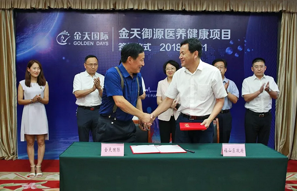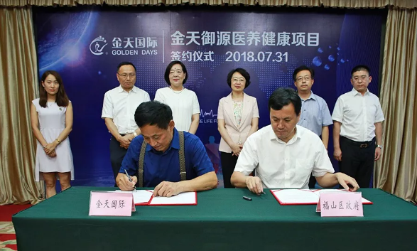 7月31日,金天御源科研中心项目与烟台市福山区政府在康养领域达成战略合作。烟台市福山区区委书记祁小青,区委常委、副区长王德胜,区卫计局、发改局、经信局、住建局、科技局、民政局、市场监管局、商务局、环保局、税务局、国土分局、规划分局等单位主要负责人,金天国际董事局主席祖明军、副总裁祖明艳等政府、企业领导出席签约仪式。