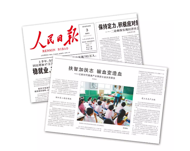 8月3日,《人民日报》刊登《扶智加扶志 输血变造血》一文,详细报道了我们热心公益的善心义举: