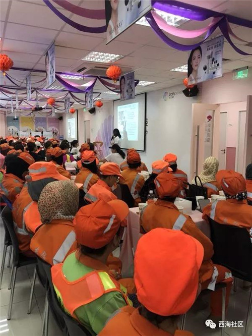 近日,玫琳凯青海分公司教室里来了一群“特殊”的客人,她们是西宁市城东区市政公用服务中心清扫保洁大队1-9队的环卫工人。