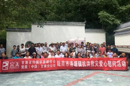 完美甘肃分公司响应甘肃省侨联、甘肃省侨界青年联合会筹备组号召,立即联合多家侨企发起救助募捐倡议,有近70家企业和个人参与募捐,包括甘肃省完美服务中心,加拿大、意大利等世界各地侨商会,以及艺术家、商界精英等爱心人士,筹得善款全部用于购置救灾物资运往杨家庄村。