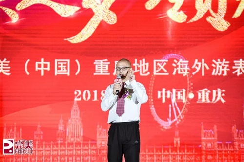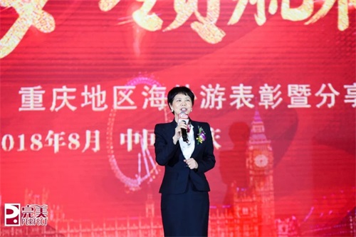 完美公司业务中心总经理岳新鸿为本次会议总结,她肯定了完美人的努力并鼓励大家要不忘初心,砥砺前行。她表示重庆是一个很有发展潜力的城市,希望大家能够紧跟步伐,争取明年能够有更多人参加海外研讨会活动。