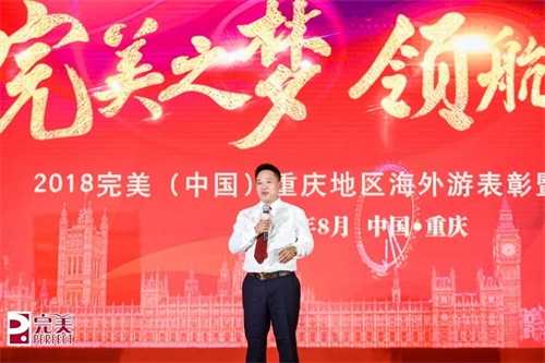 完美重庆分公司冷涛总经理为本次会议致辞,他带领大家回顾了完美重庆分公司上半年的业绩发展情况,肯定了大家的付出与努力,鼓励大家在下半年能够抓住健康管理的契机,积极倡导健康管理并以身作则带动市场,相信定能再创佳绩!
