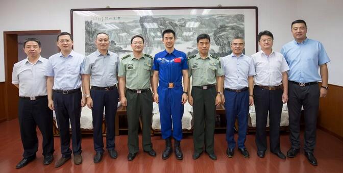 从左向右:中国航天基金会副秘书长袁茂富,启明公益基金会理事陈镝飞,罗麦科技有限公司市场副总裁付洪宇,航天工程大学校长、中科院院士周志鑫将军,英雄航天员陈冬,航天工程大学政委张长生将军,启明公益基金会理事长陶国林,中国航天基金会秘书长于国斌,启明公益基金会副秘书长李建勇