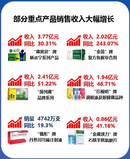 2018年上半年,公司以实现高质量基础上的高速发展为目标,继续以大品牌大品种工程为主线,切实完善激励体系,积极加强营销网络建设,继续保持了较好的发展势头。纳入大品牌大品种工程项目的系列品牌产品2018年上半年累计实现销售收入26.29亿元,较上年同期增长69.67%,其中:感冒药“金笛”牌复方鱼腥草合剂继续保持超高速增长,依托产品和品牌优势,再加上策略正确、执行到位,该产品在2017年实现销售收入1.78亿元同比增长140%的基础上,2018年上半年实现销售收入2.02亿元,比上年同期增长达到243.07%,为其成长为感冒药领域大品牌大品种奠定了基础。“康恩贝”牌肠炎宁系列、“前列康”牌普乐安及坦索罗辛系列和“珍视明”牌滴眼液及眼健康系列产品在2018年上半年销售收入分别达到3.77亿元、2.41亿元和1.94亿元,较去年同期分别增长30.31%、51.22%和46.71%。处方药方面,“康恩贝”牌麝香通心滴丸产品、“金康速力”牌乙酰半胱氨酸泡腾片等品牌产品销售收入同比均有40%以上增长;尤其是下属贵州拜特公司的“恤彤”牌丹参川芎嗪注射液产品,面对较不利的市场环境,通过近几年来持续不懈开发扩大基层、民营医院等市场,销量扭转了近二年来的下降态势并呈现企稳回升,2018年上半年实现销售数量4,742万支,同比增长19.30%,实现销售收入8.94亿元,同比增长200.48%(其中逐步执行“两票制”下的价格政策带来的销售收入增加额为5.47亿元,剔除该因素可比口径增长26.84%)。