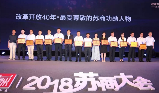 ▲“改革开放40年·最受尊敬的苏商功勋人物”获得者合影