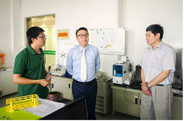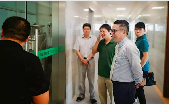 上午九时,徐建成董事长一行抵达江南大学,在中国工程院院士、江南大学校长陈坚,江南大学生物工程学院教授、博士生导师周景文,江南大学生物工程学院教授康振以及诸位学校领导的陪同下,徐董一行仔细参观了学校生物工程实验室。参观过程中,徐董详细询问了高通量机器人筛选实验室、单细胞筛选分离实验室的建设情况与应用前景,对江南大学执着科研、深耕教学的学术精神表示敬佩。