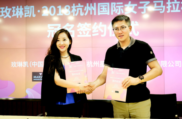 2018年8月21日,“玫琳凯2018杭州国际女子马拉松”冠名签约仪式在杭州举行。本次赛事由中国田径协会、杭州市体育总会、杭州经济技术开发区管委会主办,由杭州市长跑运动协会、浙江午马体育文化策划有限公司、杭州星推网络科技股份有限公司承办。主办方在仪式现场首次公布了本次大赛的宣传片,并正式宣布玫琳凯成为赛事冠名商,玫琳凯怡日健固多肽固体饮料成为赛事唯一指定运动健康产品。玫琳凯也将与主、承办单位一起,助力新时代女性展现独特魅力、突破自我极限,共同打造出一场专属于女性的精彩体育盛宴。