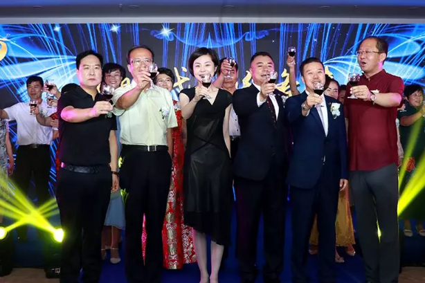公司领导及全疆国珍健康生活馆馆长共同上台祝酒