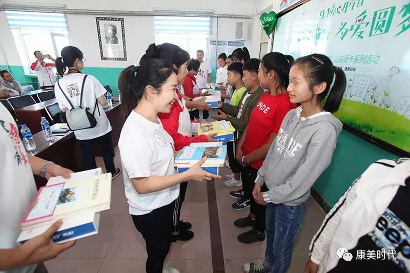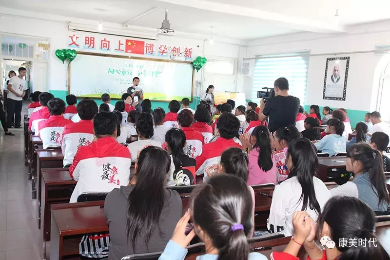 康美时代商学院院长蒋涛先生与“青禾大使”吴秌颖女士以及康美爱心志愿者们为里木店镇中学的孩子们送上最贴心的健康保障,为贫困少年的健康保驾护航!