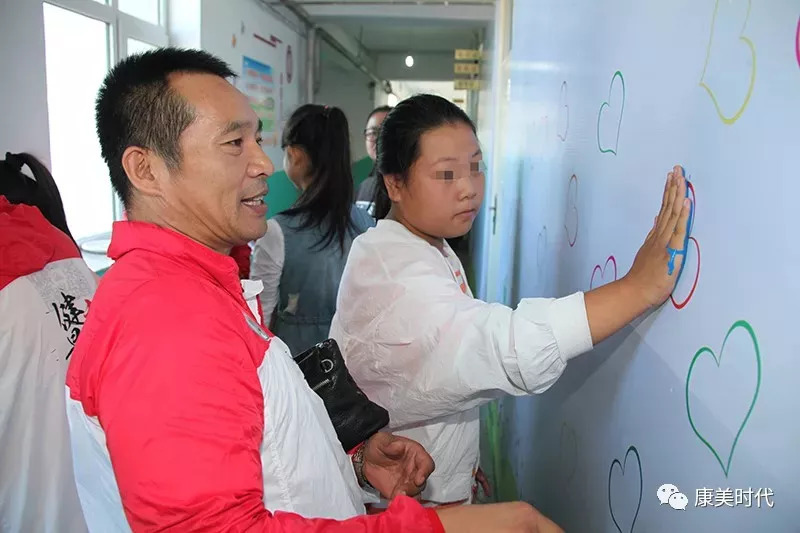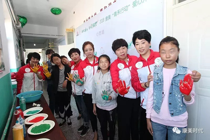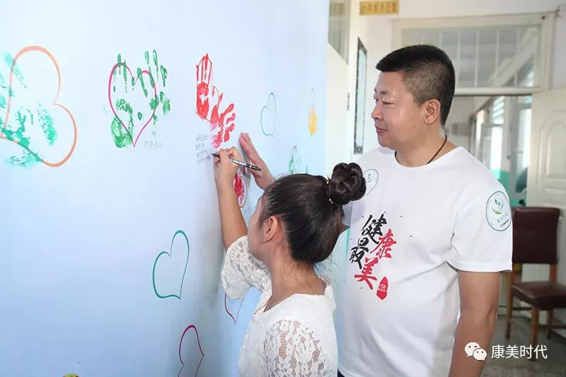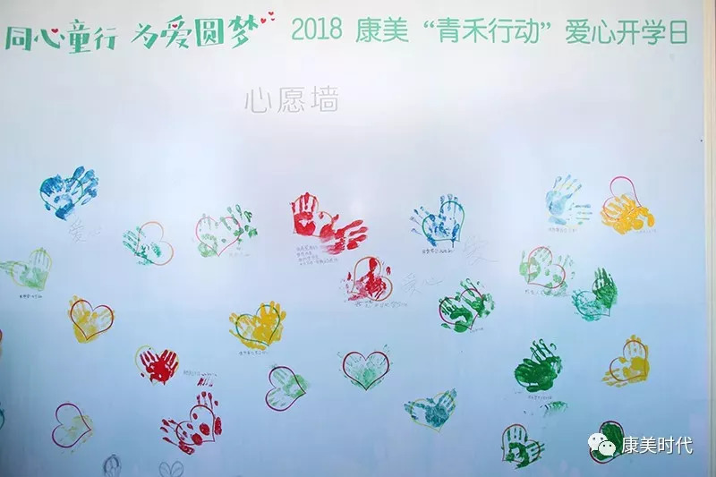 同时,他们与孩子们大手牵小手,共同在心愿墙上印上爱心的手印,留下美好心愿。