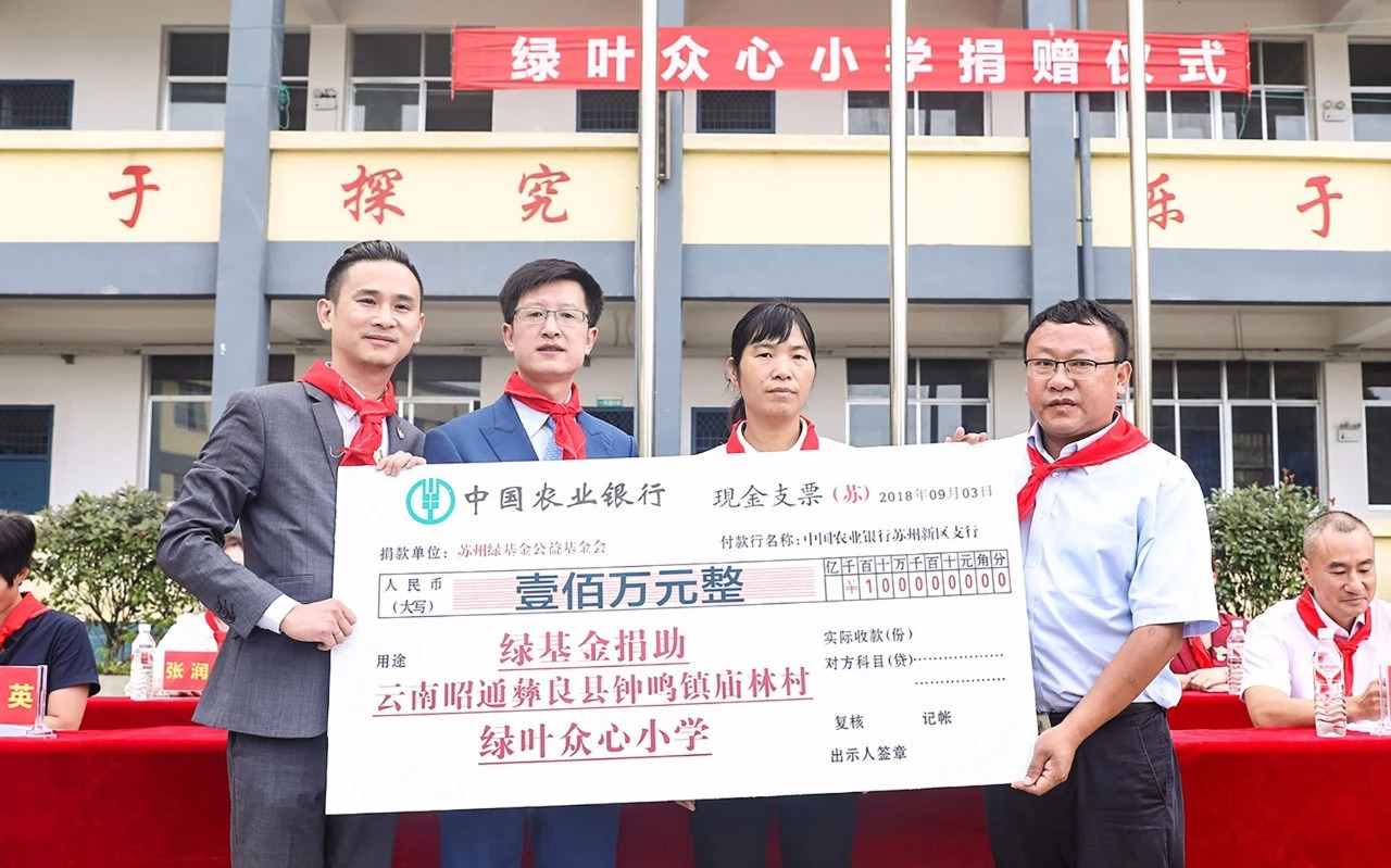 绿叶科技集团、绿基金代表来到新四军高级将领、解放军军事家罗炳辉将军故居所在地——云南省昭通市彝良县,代表绿基金捐资100万援建绿叶众心小学,向国定贫困县彝良县的教育困境伸出援手、贡献绿叶力量,以实际行动助力学校翻新重建,为全校300余名师生创造更好的教学条件。