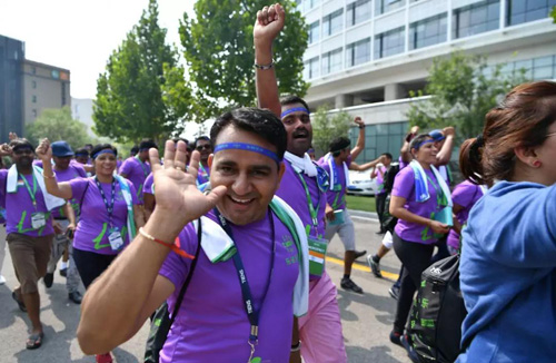 作为整体活动的开场环节,3公里迷你跑有别于传统的慢跑,环节设计颇具新意。慢跑路线贯穿整个天狮国际产业园,园内多个标志性建筑,包括奥蓝际德国际会议中心、泰济生医院、天狮博物馆等悉数收纳其中,参与者在慢跑过程中游览园区内建筑景观。活动中,来自印度的经销商团队统一行动、统一口号列队慢跑,也成为慢跑活动中一道独特的异域风景。除此之外,慢跑路线中加入了多个突出“乐轻乐燃”主题的站点,参与者需要完成站点内指压板、平板支撑、俄罗斯转体等互动挑战,通过站点内设立的多项燃脂运动挑战,增强了趣味性的同时,也使燃脂更为高效。参与本次活动的媒体传播团队非常给力,除了给力的媒体阵容,还利用全景无人机,全程跟跑活动,记录下“燃迷”挥汗燃脂的全景画面。
