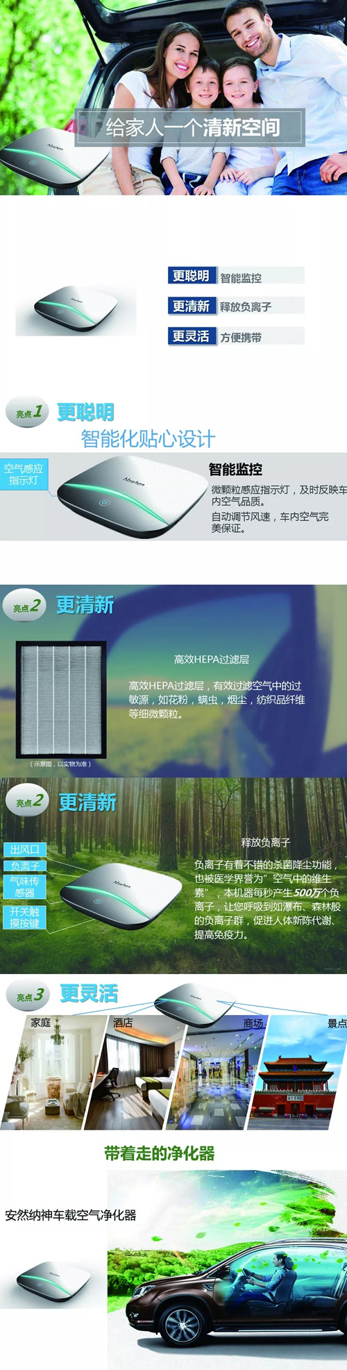 安然纳神车载空气净化器 能带着走的净化器