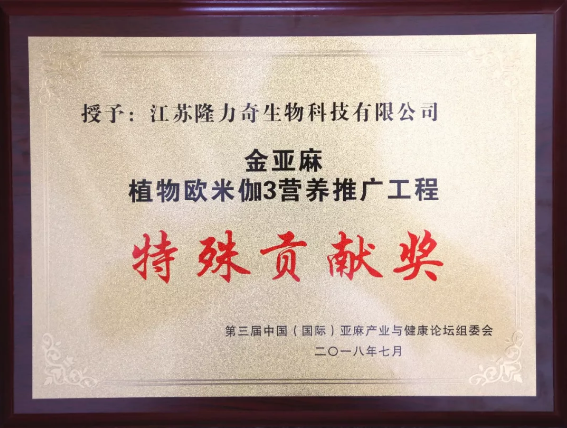 此外,本次论坛上还揭晓了金亚麻植物欧米伽3营养工程特殊贡献奖和金亚麻会宁八里湾精准扶贫先进帮扶单位等。江苏隆力奇生物科技有限公司荣获“金亚麻会宁八里湾精准扶贫先进帮扶单位”以及“金亚麻植物欧米伽3营养推广工程特殊贡献奖”。 徐之伟董事长个人荣获“金亚麻会宁八里湾精准扶贫特殊贡献奖”。