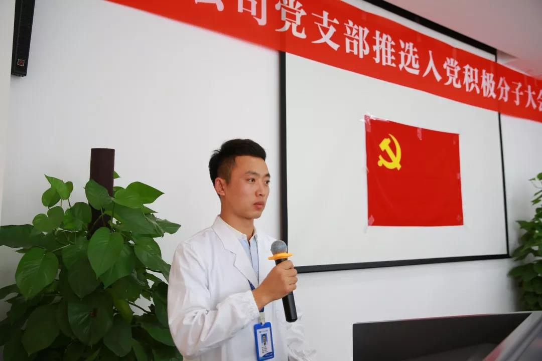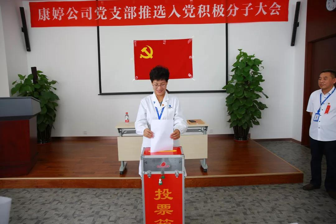 2018年9月12日,康婷公司党支部召开推选入党积极分子大会,通过党员票推,成功推选王鹏、李晶、葛皓、蔡馥阳等四人为入党积极分子初步人选。会上,支部书记杨震号召全体党员、积极分子以他们为榜样,学习他们的优秀先进事迹。