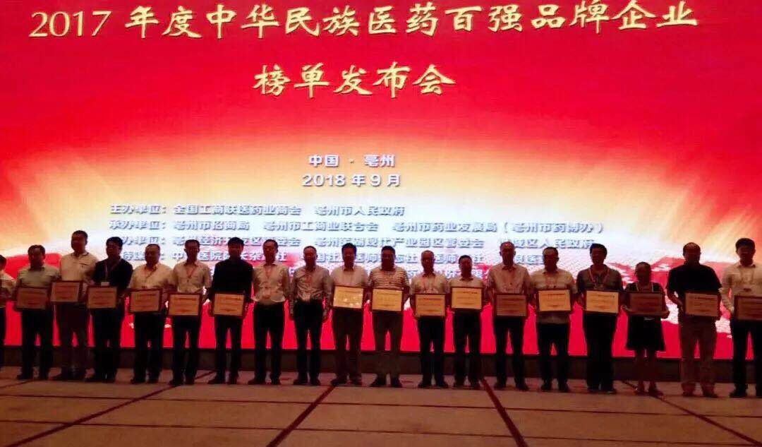 9月8日,由全国工商联医药业商会主办的“2017年度中华民族医药百强品牌企业发布会暨弘扬民族医药·打造民族品牌主题论坛”在中华药都安徽省亳州市成功举行。