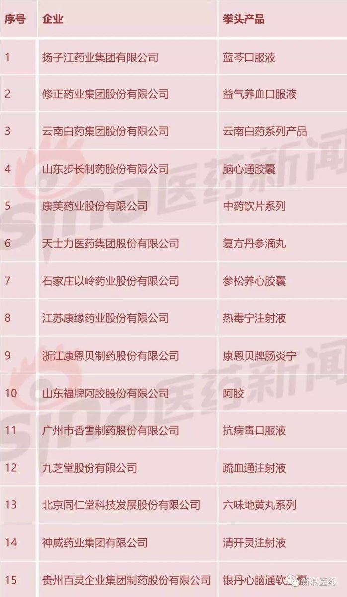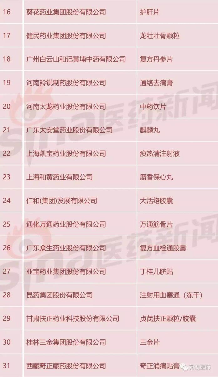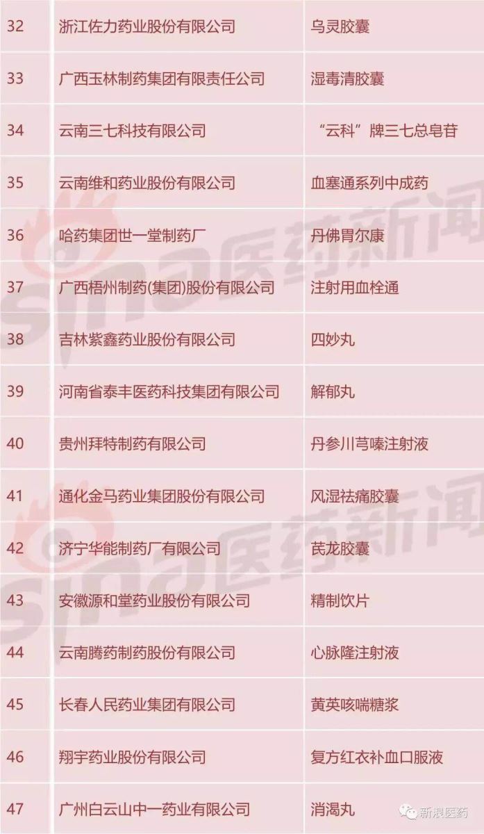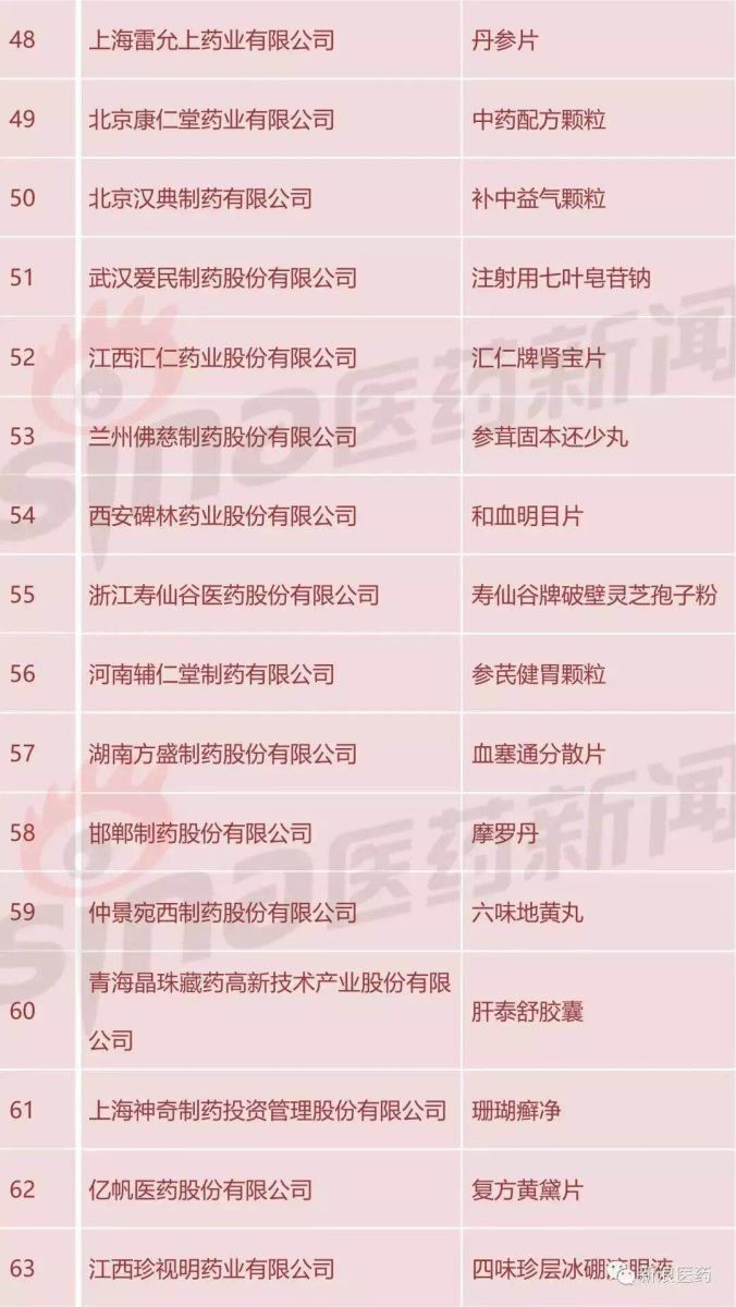 附:2017年度中华民族医药百强品牌企业榜单