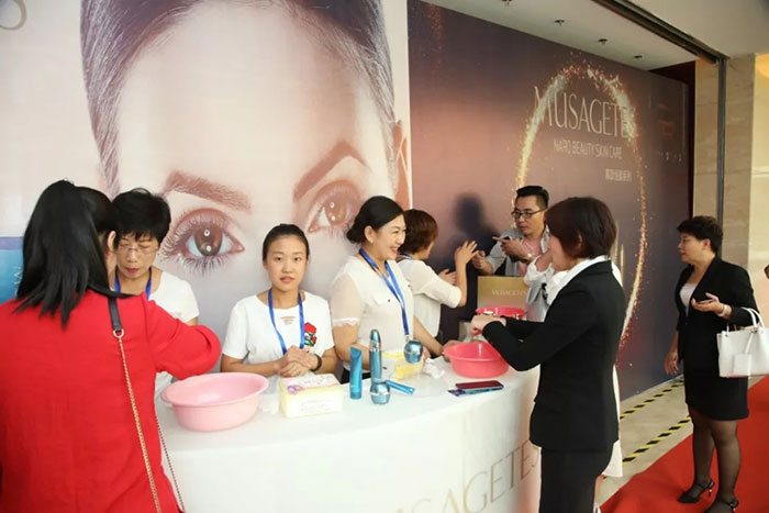 三楼设置慕瑟系列的美容产品展示区,公司专业讲师为家人们讲解产品卖点,体验产品效果。