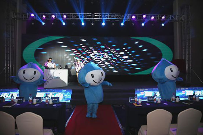 会场一楼设置主视觉及签名墙,欢迎全国各地的家人们。可爱的小精灵迎接大家并与大家互动,微信展架及小精灵互动展示架引来家人们极大的兴趣。