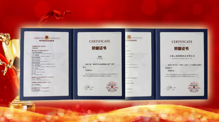 吉林云尚保健食品有限公司荣获“亚洲(行业)十大创新力品牌”、总裁刘阳先生获授“新时代中国品牌创新人物”,彰显了“云尚”品牌发展新高度!