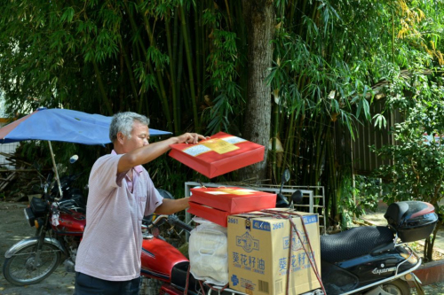 陈怀德先生向贫困村民赠送大米、食用油和月饼