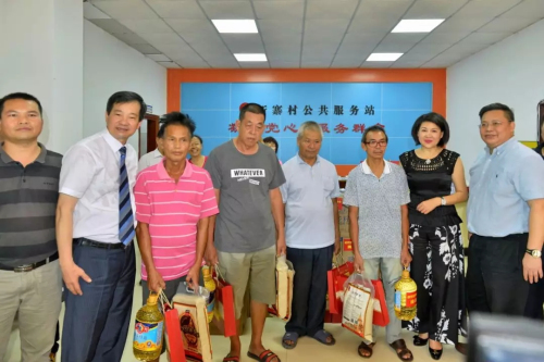 当天,富佑集团董事局主席、广州市越秀区侨商会会长陈怀德先生和广东省富迪慈善基金会理事长、广州市越秀区侨商会副会长胡静女士,率领侨商会一众会员来到浸潭镇新寨村,参加了节日礼品赠送仪式。参加活动的还有越秀区政府办副主任蔡定基,越秀区政府办侨办副主任谢永忠、丛洪君以及区侨办的相关负责人。村委领导和村民们亲热地接待远道而来的侨商会会员。