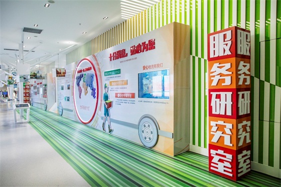 本次展览分为“物流实验室”和“服务研究室”两大主题,“物流实验室”着重介绍高质量的物流防护,为了能更直观地展示产品的防护效果,别出心裁地采用“水元素”进行演示。