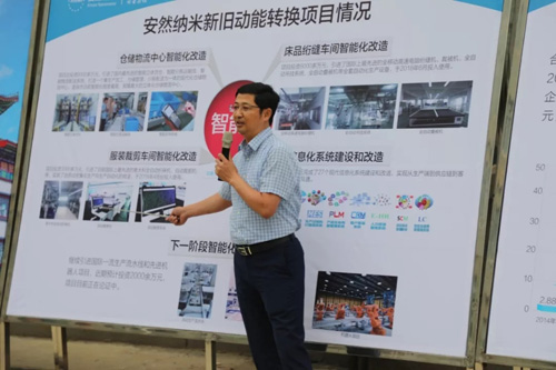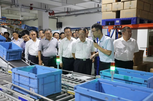 威海市人大常委会主任王学文、副主任毕礼伟、李文基、于东海,经区工委书记、管委主任吕晓东,荣成市委书记江山领导一行,参观了智能立体仓库和自动化物流分捡线,了解了服装车间裁剪智能化改造、床品绗缝车间智能化改造及安然20余个现代化信息系统建设情况。安然公司董事长刘润东、政策管理办副总裁兼直销中华区营运总裁杨金成、生产总监王雪松陪同参观。