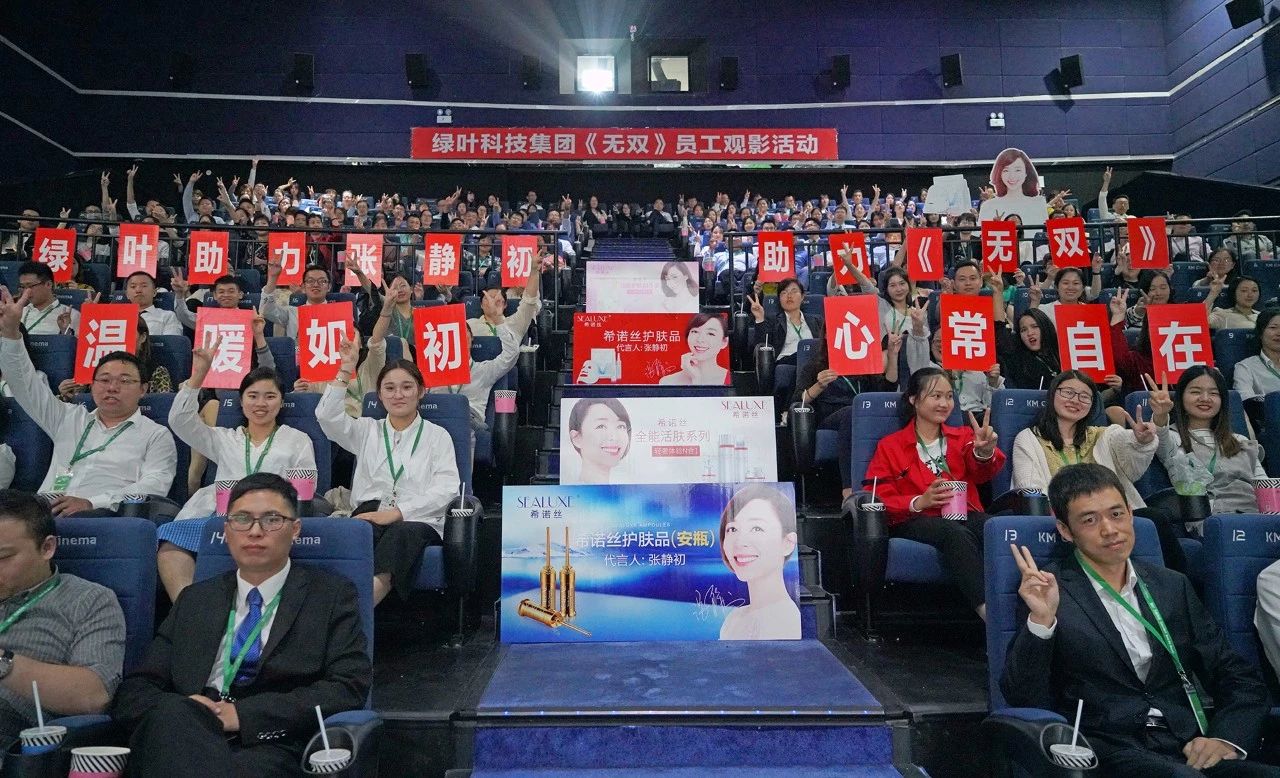 2018年10月9日下午,绿叶科技集团组织全体1200名员工包下整座影城,观看静初女神的新电影——《无双》,以实际行动支持女神巅峰之作。