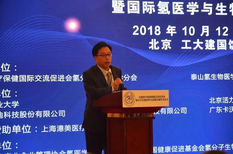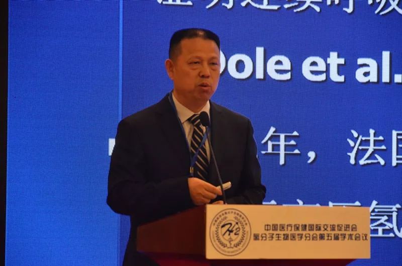 中国医促会氢分子生物医学分会主任委员、海军军医大学孙学军教授致辞表示:“中国医促会氢分子生物医学分会,为更多国内关注和从事氢分子医学研究的专家学者们提供一个交流与合作的平台,我们每年会举办一次氢分子医学学术交流大会,此次会议我们安排了由国内外知名学者进行氢分子生物医学进展报告,发布最新氢气研究进展,也是首届国际氢医学与生物学大会。借此,希望加强国内外氢气研究同仁之间的交流和合作,希望广大同仁充分利用这次难得的学习机会,为推动我国氢分子医学研究事业的发展努力奋斗!”