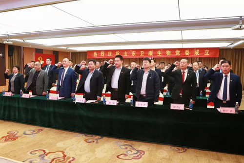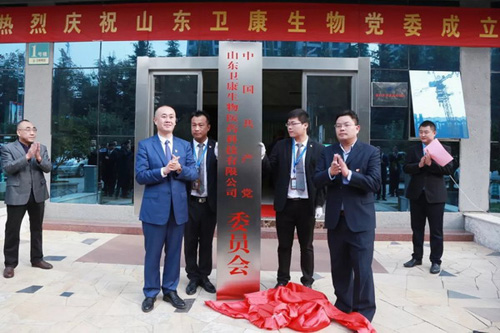 10月15日上午,山东卫康生物党委揭牌成立。卫康生物党委揭牌暨“与党同辉 共享健康”公益活动启动仪式在卫康生物科技园内举行,高新区党工委组织部副部长王召义,卫康生物党委书记王玉平,集团全体党员和部分企业领导人参加了仪式。