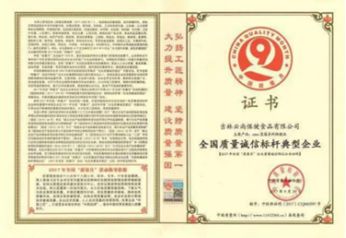 国家质检总局授予吉林云尚“全国百佳质量诚信标杆示范企业”荣誉称号