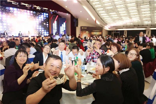 晚宴上,隆力奇特意为本次盛典准备了豪华千人蟹宴。伴随着精彩节目,歌声、掌声、欢呼声一直在会场上荡漾。整场晚宴高潮迭起,呈现出隆力奇大家庭的欢乐和谐。