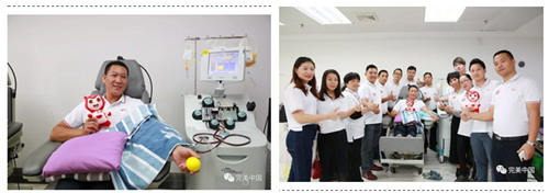 由完美党委、团委成员,中山总部献血楷模,完美服务中心献血先锋代表组成的“完美百名无偿献血爱心大使”走进血站,深入了解血液采集处理工作和无偿献血的社会意义。
