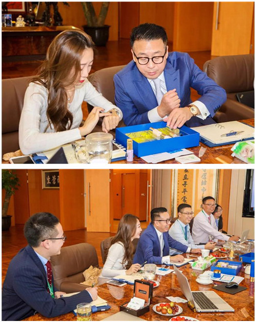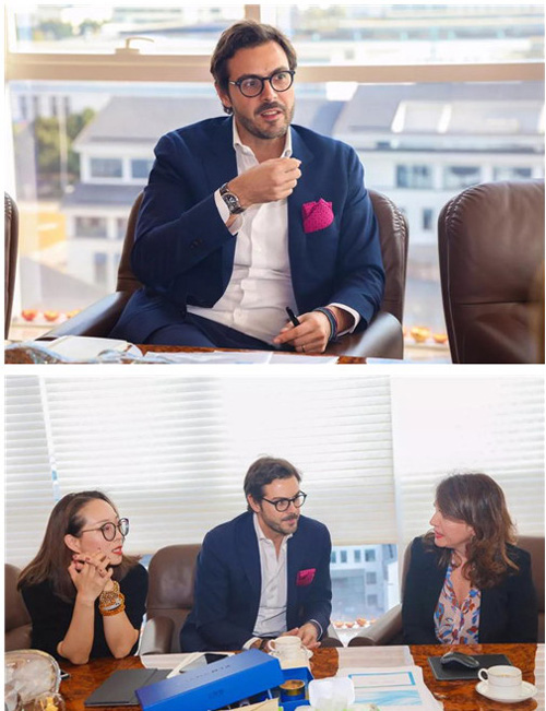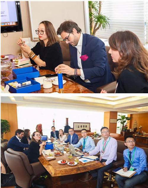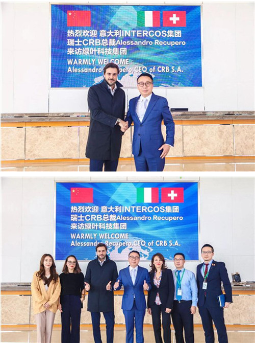 2018年10月19日,全球知名化妆品巨头意大利INTERCOS集团下属瑞士CRB公司总裁Alessandro(亚历山大)先生和意大利INTERCOS集团创意产品总监Mirna(米安娜)来访绿叶洽谈新品合作,绿叶科技集团董事长徐建成先生携集团高管出席座谈会。双方就护肤技术、科研创新、产品升级、市场规划等多方面进行深度交流,并重点洽谈瑞士CRB为绿叶专属定制的高端护肤品。