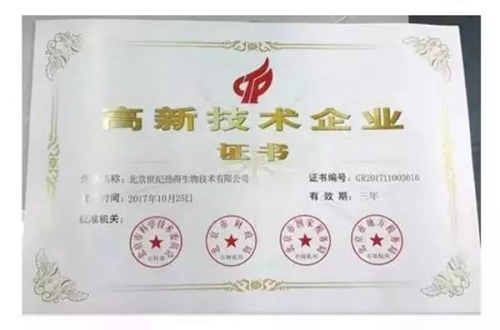 “国家高新技术企业”证书