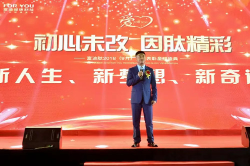 袁伟先生在致欢迎辞时表示:富迪公司在直销领域业绩斐然,我们的成绩离不开这个时代,离不开党和政府的支持与关怀,富迪公司是一个爱国的民族直销企业,感恩我们的党和政府,感恩我们的祖国。