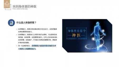 航天康谷人体自修复中心,帮我们找到身体里的神医!我们人体原本就天生拥有、与生俱来的自我防御、自我修复、自我复原的能力。它可以及时自我诊断、自我修复、自我维护,不仅能令疾病自我康复好转,更能保护身体免受侵害。