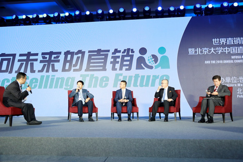 25日上午,在“直销在中国的发展”研讨环节,康宝莱中国区总裁郭木和其他直销公司的相关负责人及中国保健协会负责人共同进行了话题研讨。