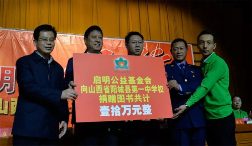 启明公益基金会响应十九大精神积极助力中国教育事业,推动“启明公益万里行——阅读点亮人生”捐书助学活动蓬勃开展,为广大青少年送去开卷有益的书籍,帮助他们用阅读点亮人生。10月23日,“启明公益万里行——山西阳城站捐赠仪式”在山西省晋城市阳城县第一中学隆重举行,启明公益基金会捐赠了价值10万元的图书,并在该校建立了“中国航天启明图书室”。