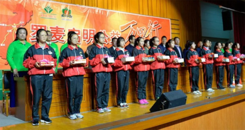 启明公益基金会山西项目部刘恺宇,基金会理事黄佳怡女士,晋城市工商局科长田里屯,科员王欣,阳城县工商和质量监督管理局局长刘书远,教育局局长张国瑞,民政局局长成学龙,阳城县第一中学校长崔精占带领部分师生,以及爱心志愿者郭晓红、石飞仁、田刘丰、郑志兵等60余人。