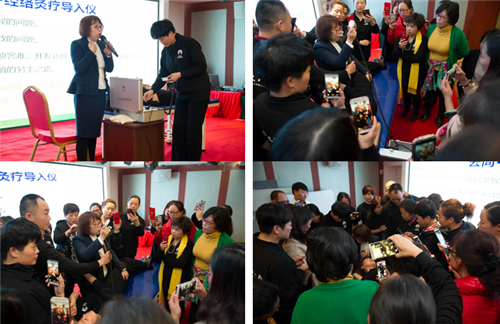 云尚商学院刘晶老师为大家带来通俗易懂,着重实际运用的灸导仪课程。参会家人们学习热情高涨,踊跃提问,积极参与操作体验,在运用灸导仪的学习道路上又迈进了一大步。