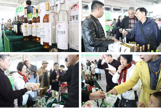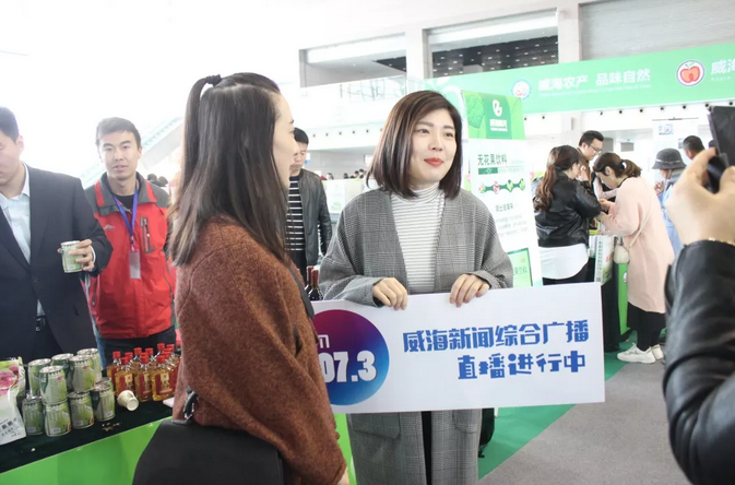 展位陈列产品主要包括无花果饮料、无花果干、各类无花果酒等。良好的产品品质与口碑信誉,吸引众多顾客前来品尝购买,更有威海新闻综合广播进行现场直播,使得展位前人潮攒动。